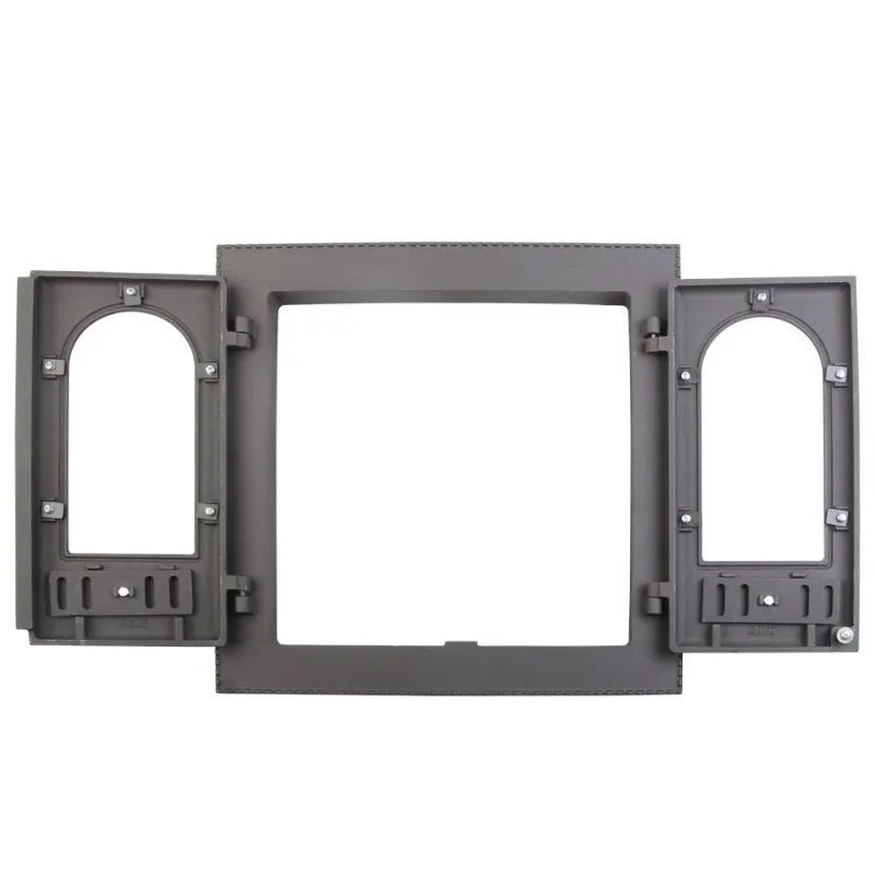 На створках установлены шиберы – устройства для подачи кислорода в топку, также предотвращающее возникновение гари на стекле.